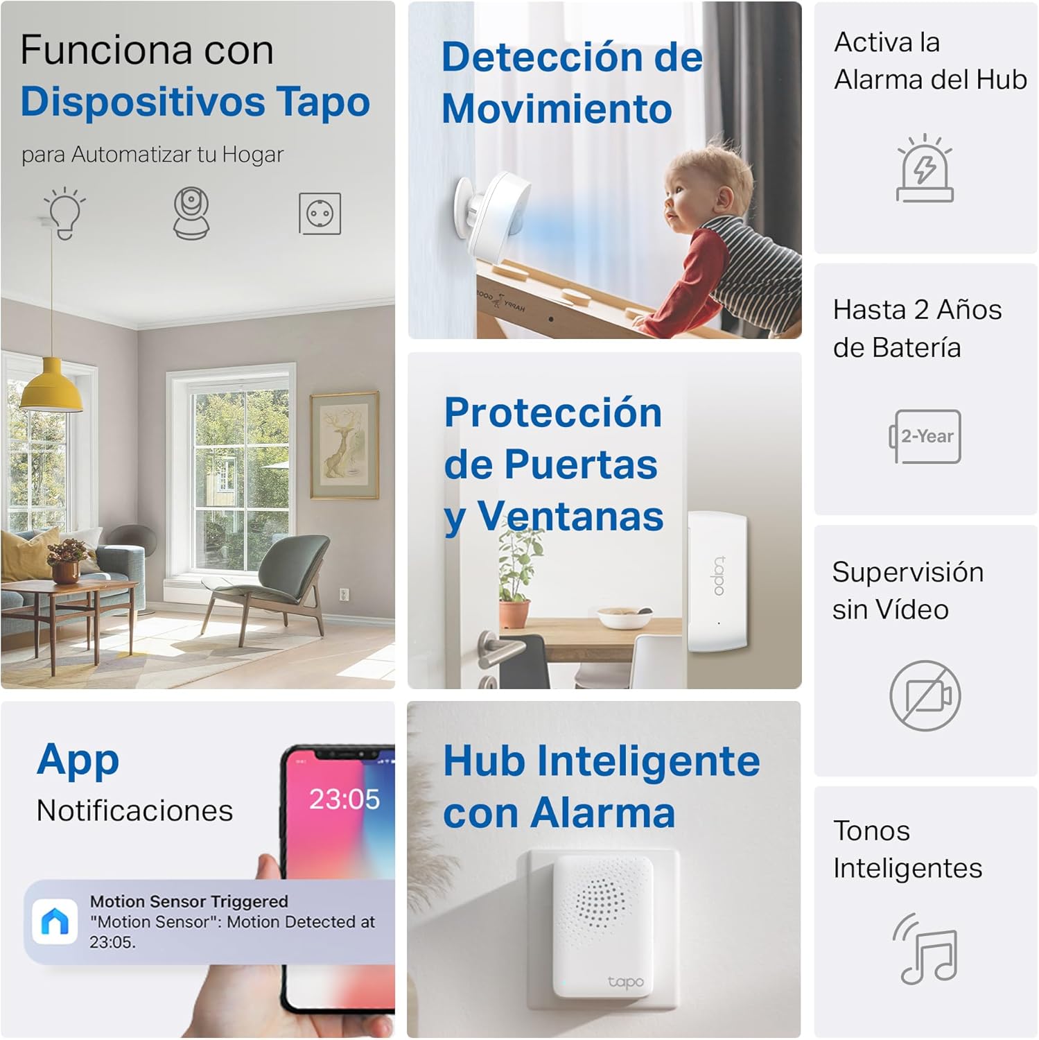 Tapo T30 Kit Alarma Hogar – Hub H100 + Sensor Movimiento T100 + 2 Sensores Puerta/Ventana T110, Sirena hasta 90 dB, Alertas en App Tapo, Automatizaciones, Sin Cuotas