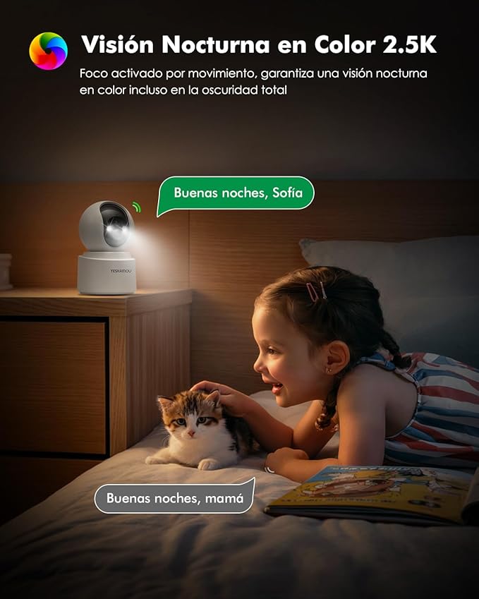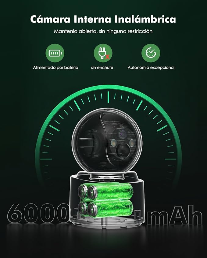 YESKAMOU Y660 – cámara WiFi interior 2.5K (4MP) 100% inalámbrica con batería recargable 6000mAh y Wi-Fi 2.4/5GHz. Control PTZ, visión... Leer más...