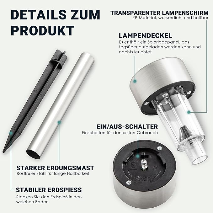 GIGALUMI Luces Solares Jardín Exterior LED – Pack 12 Acero Inoxidable, Blanco Frío, IP44, Auto Encendido/Apagado, Luces para Camino y Sendero