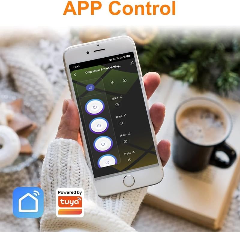 Offgridtec Regleta Inteligente WiFi 16A/3680W – 4 Enchufes + 2 USB-A (5V/3,1A) + 2 USB-C PD 20W, Smart Life/Tuya, Cable 1,5 m