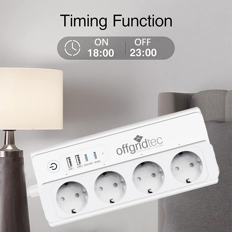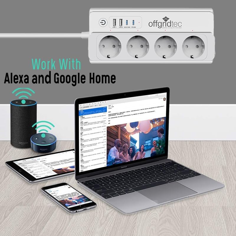 Offgridtec Smart Power Strip – regleta inteligente con 4 enchufes y 4 puertos USB (2×USB-A + 2×USB-C) para alimentar y... Leer más...