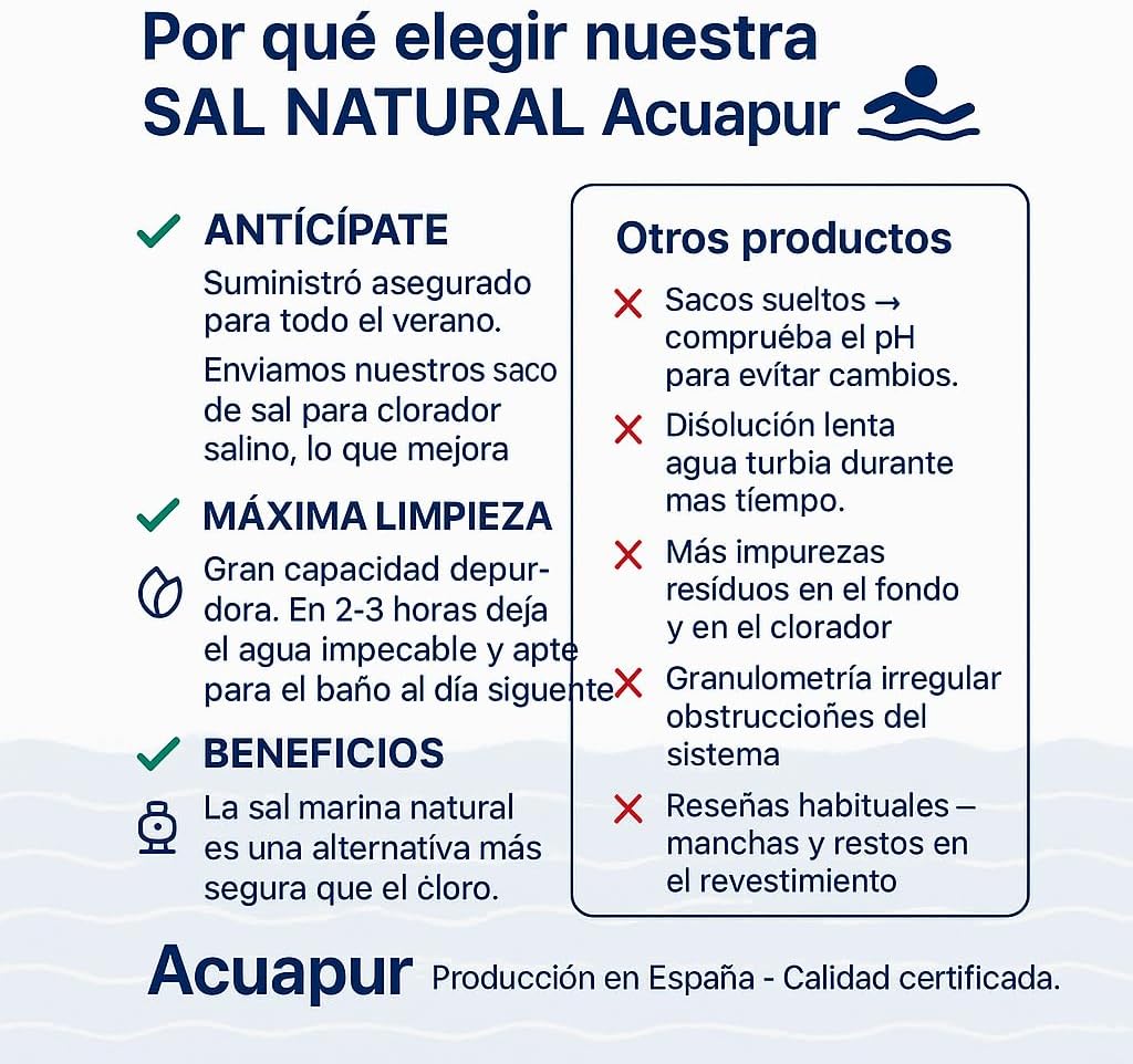 Sal para Piscina 25 kg (Pro) – Sal para Cloración Salina 99,4% Pureza, Granulada, para Piscinas, SPA y Jacuzzi
