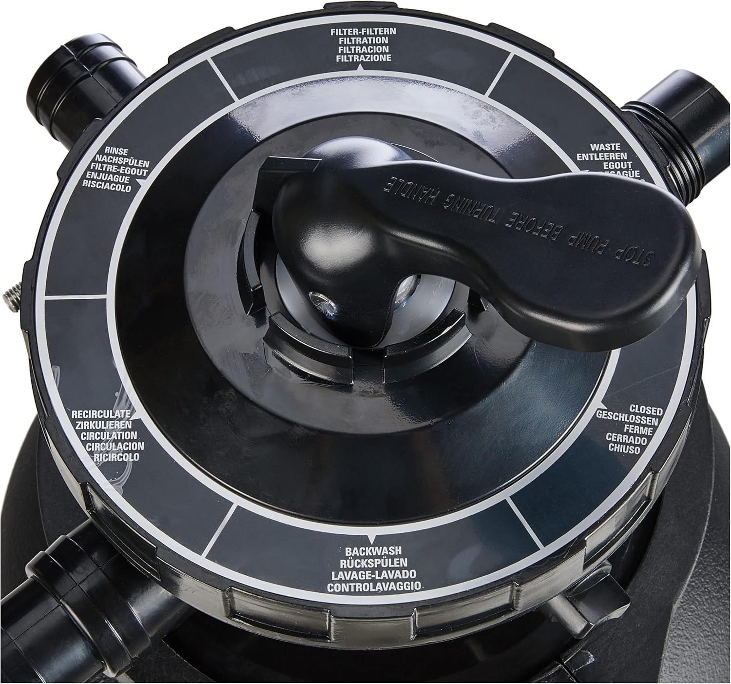 • 🔁 Válvula multivía (7 funciones) para filtrar/recircular/enjuagar/drenar, etc.