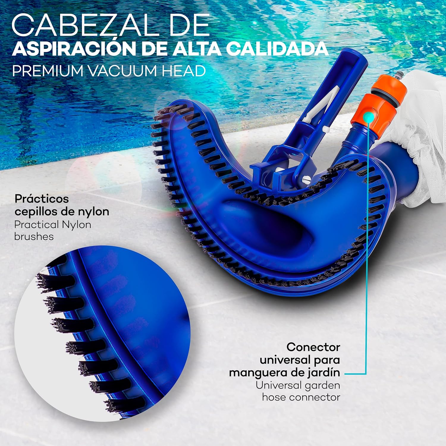 tillvex Kit de Mantenimiento de Piscina Venturi – Aspirador de Fondo con Manguera, Mango Telescópico 54–112 cm, Cepillo y Red Recogehojas