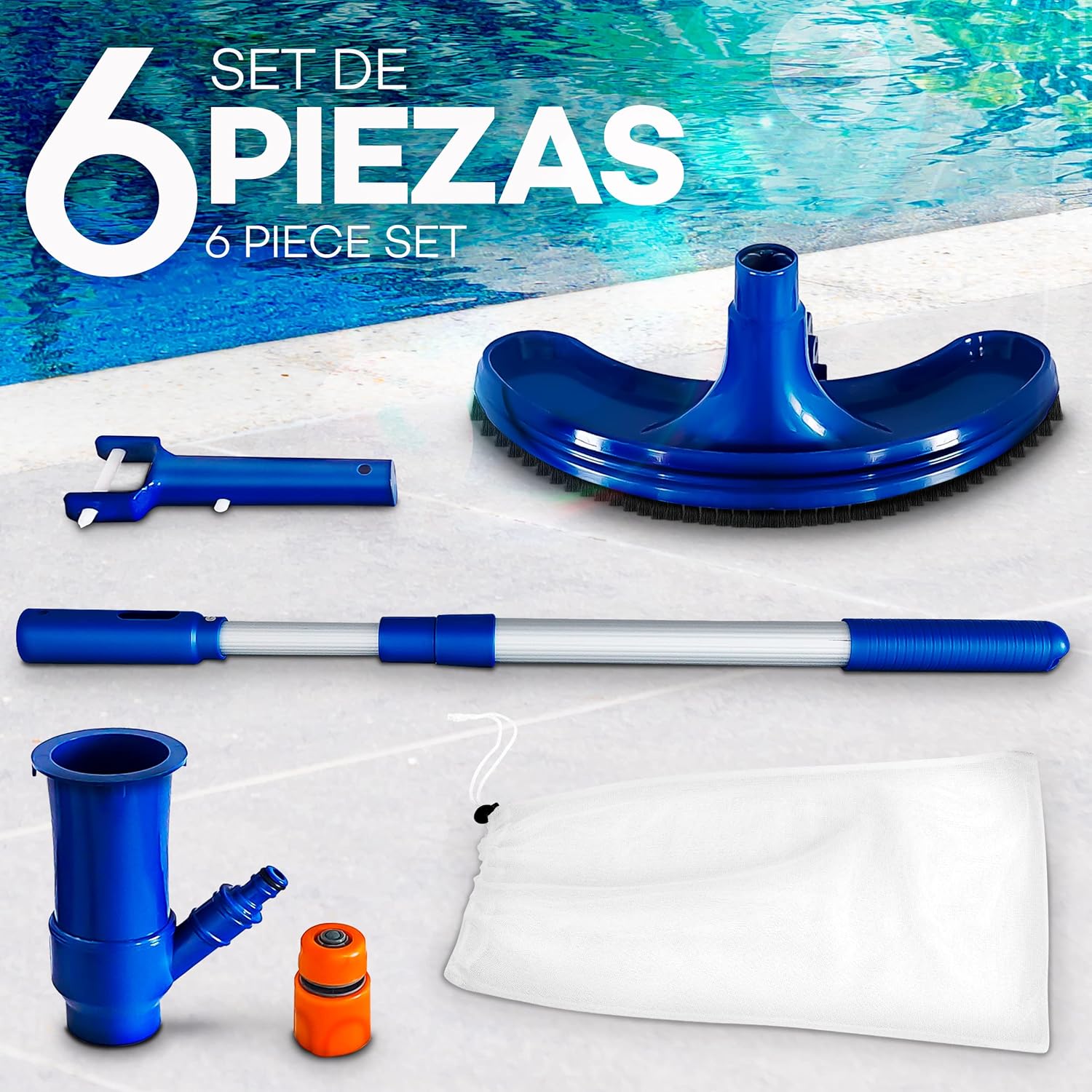 tillvex Kit de Mantenimiento de Piscina (Venturi) – set de limpieza manual con mango telescópico y aspirador de fondo tipo... Leer más...