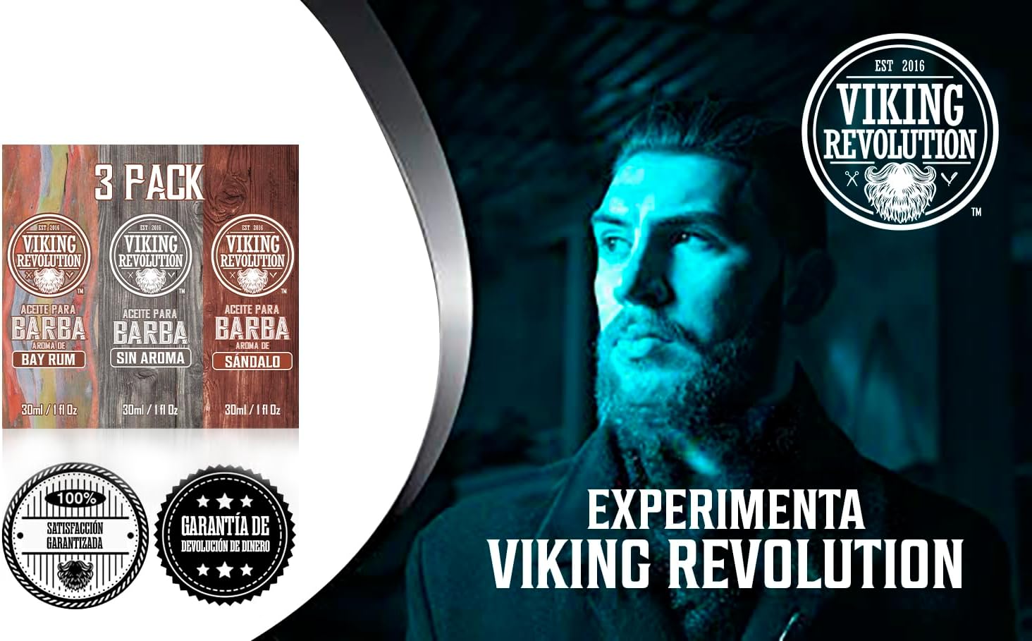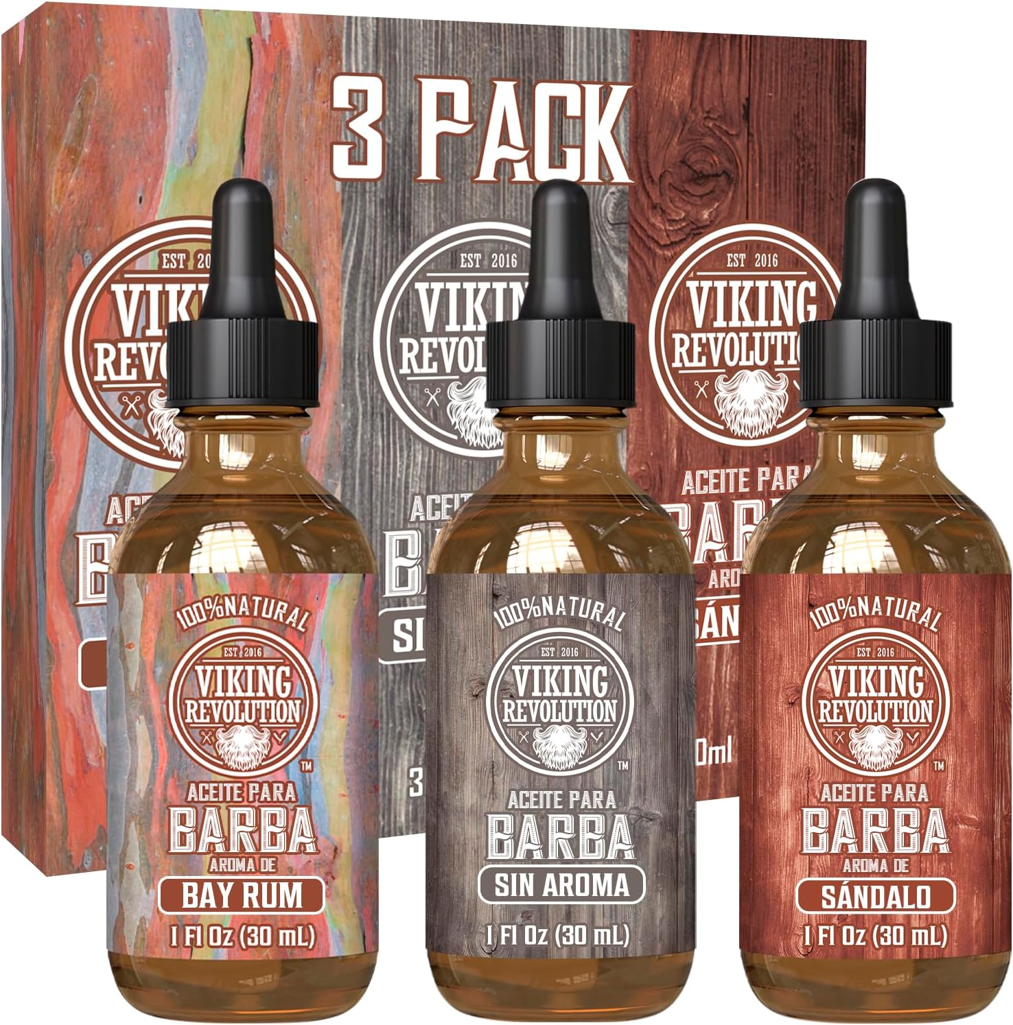 🧔♂️🧴 Viking Revolution Beard Oil – Pack de 3 (3 × 30 ml) – set de aceites para barba y bigote para suavizar, domar y mejorar la manejabilidad del vello facial.