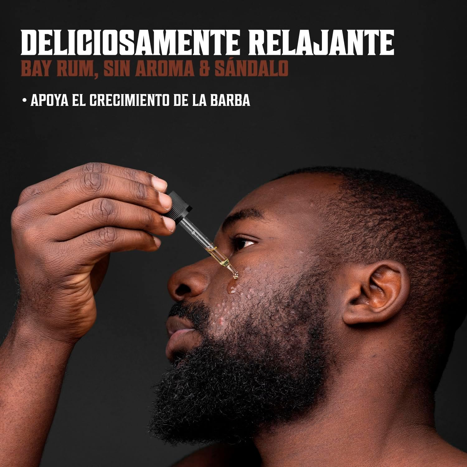 🎭🔁 Incluye 3 versiones para elegir según tu estilo: Bay Rum 🍹, Unscented 🚫🌸 (sin perfume) y Sandalwood 🌲. Formato con gotero 🧪 para dosificar fácilmente.